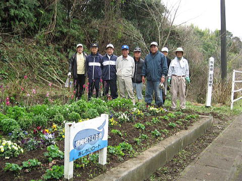 一雨ごとに暖かくなり、すっかりと春めき、あちこちに花が咲きほころび始め、昨年11月に植えた園芸ボランティアの花壇も咲き始めましたが、花が雑草の勢いには勝てず、雑草にかくれて見えない状況でした。花が可愛そうであると同時に、周辺をジョギングされる方や運転者にも見苦しく不快感を与えていたので、2月27日(日)12名の参加をいただき花壇の雑草とり、花壇周辺と桜木の周りを草刈機で草を刈り取りました。また、周辺のごみ拾い、日当たりを良くするためチエンソー持参で関屋さんに雑木の枝払いに奮闘していただきました。