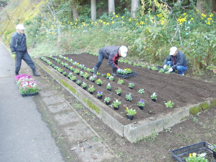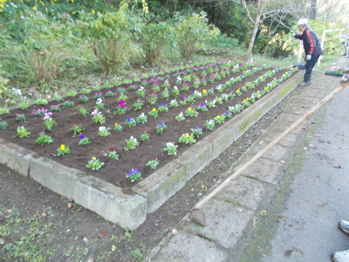 ビオラ、ナデシコ、キンギョ草 等の苗を植付け併せて周辺の