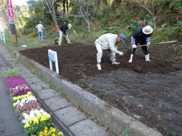 日(土)ボランティア花壇に花を植付けしました。