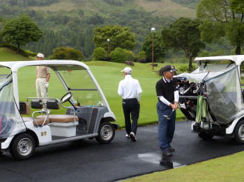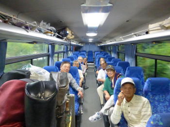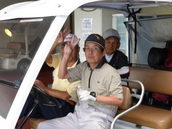 J'sゴルフリゾートの送迎バスで10名が出発、残り4名は都合で自家用車
