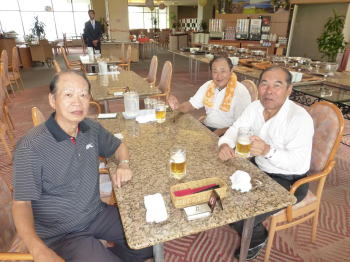 バイキング料理を肴にビールや焼酎を飲みながらゴルフコンペの結果発表と表彰