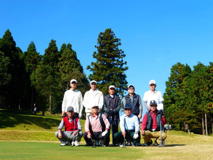 ゴルフの部は参加者9名で小林市の夷守岳山麓にあるJ’sカントリークラブ小林コース