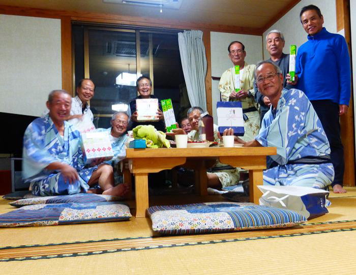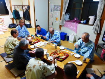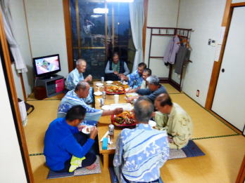 宿に到着後露天風呂に浸かった後、午後6時から4名が宿泊する部屋へ集まり、