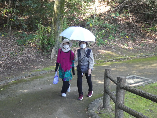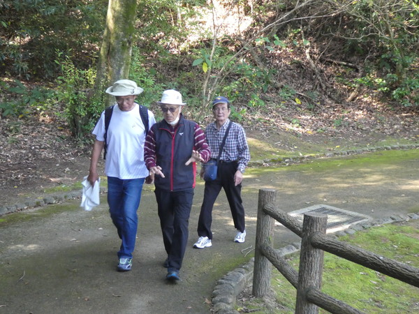 古墳群の中を熟した柿、ボケ桜を見ながら、また落ちた栗を拾いながら、各々のペースで