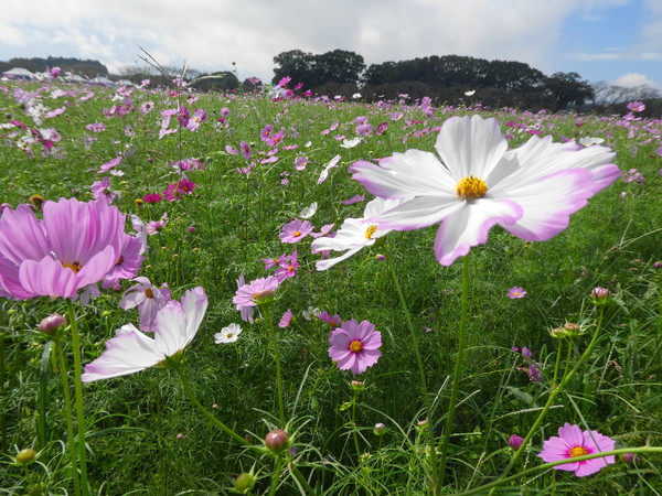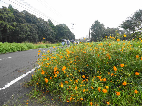 が、皆さんが集まられる頃には青空も見えるほどに回復しました。コスモスは続く暑さのせ