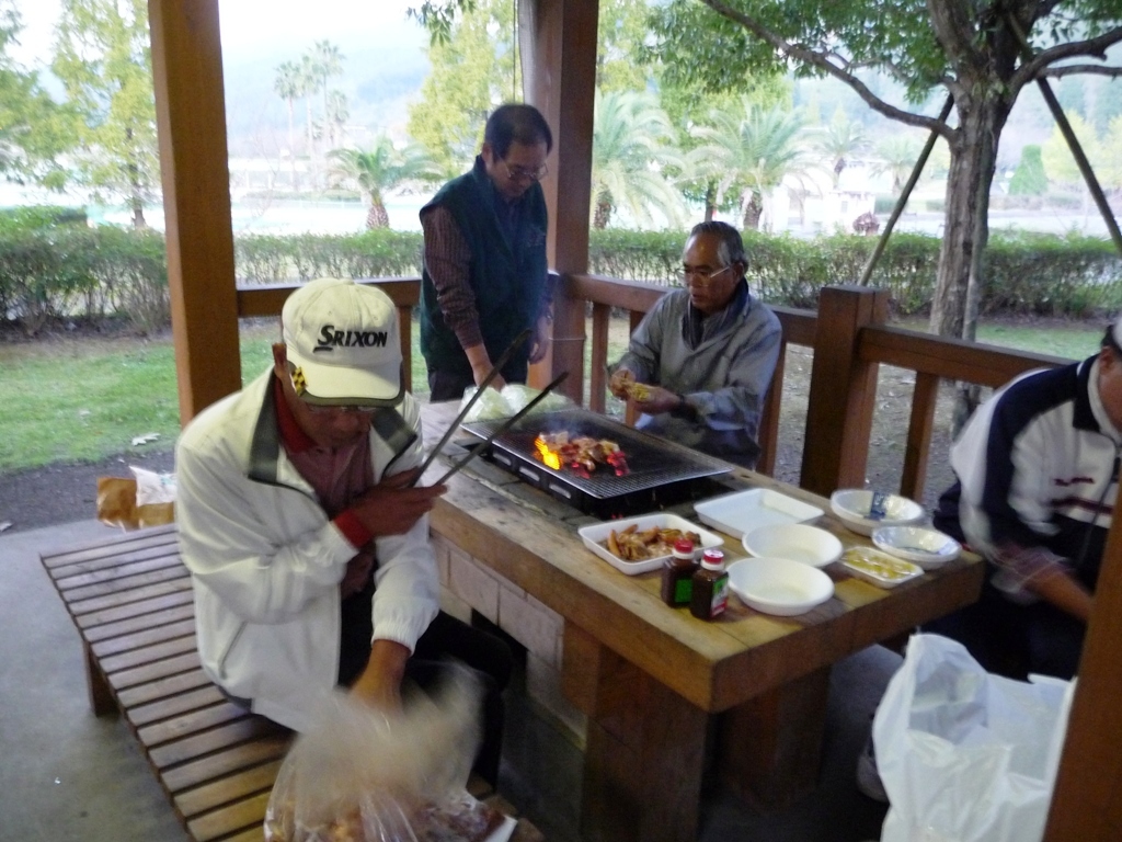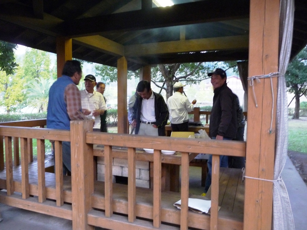 全員が都城市高城町の石山観音池公園の一角にあるバンガローに移動、合流。