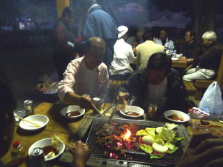 合流後は直ちに炭を起こしバーベキューを始めるものの飲み物はなし、